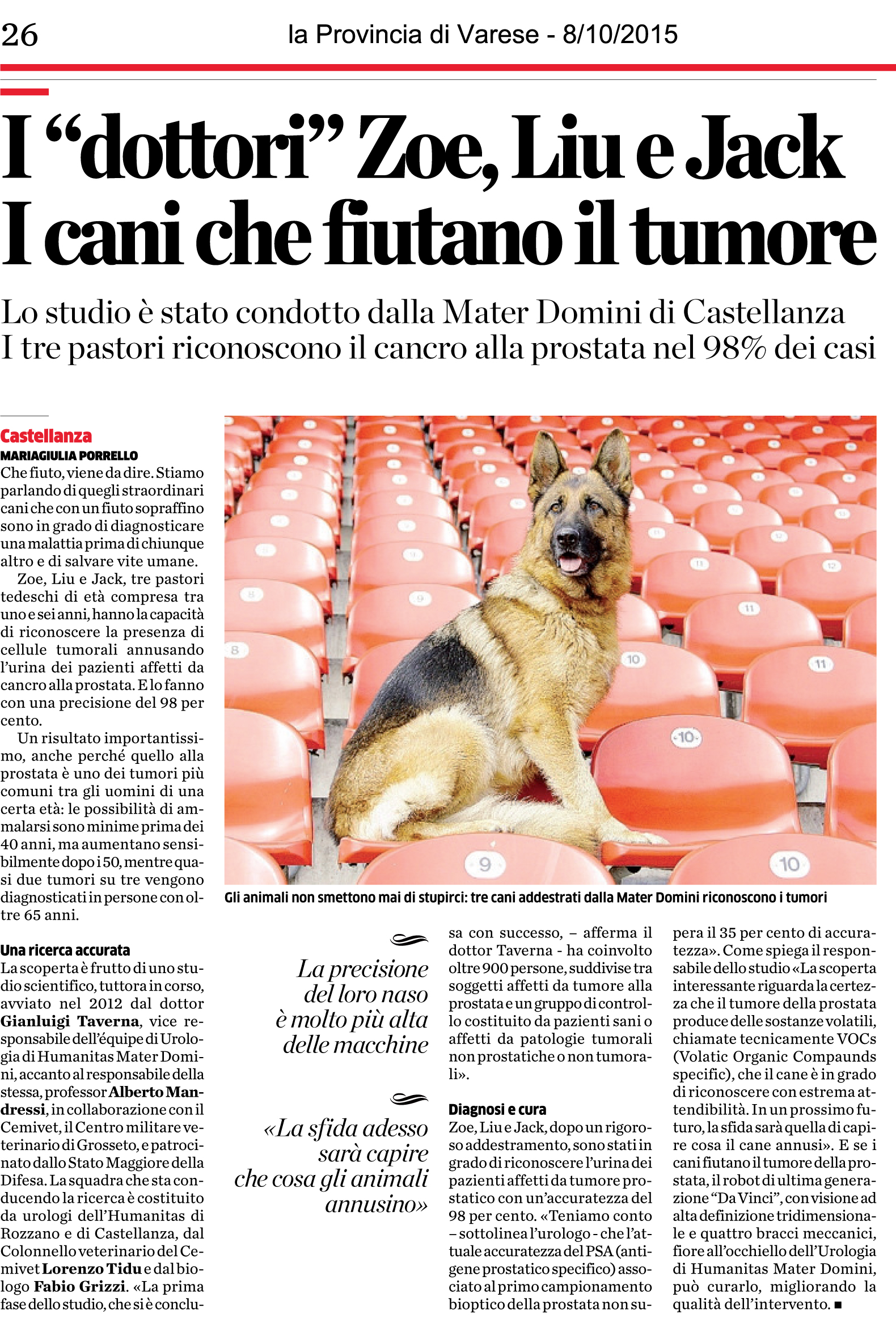 Lo studio è condotto da un’equipe di Humanitas Mater Domini di Castellanza in collaborazione con il Centro militare veterinario di Grosseto e patrocinato dallo Stato Maggiore della Difesa.