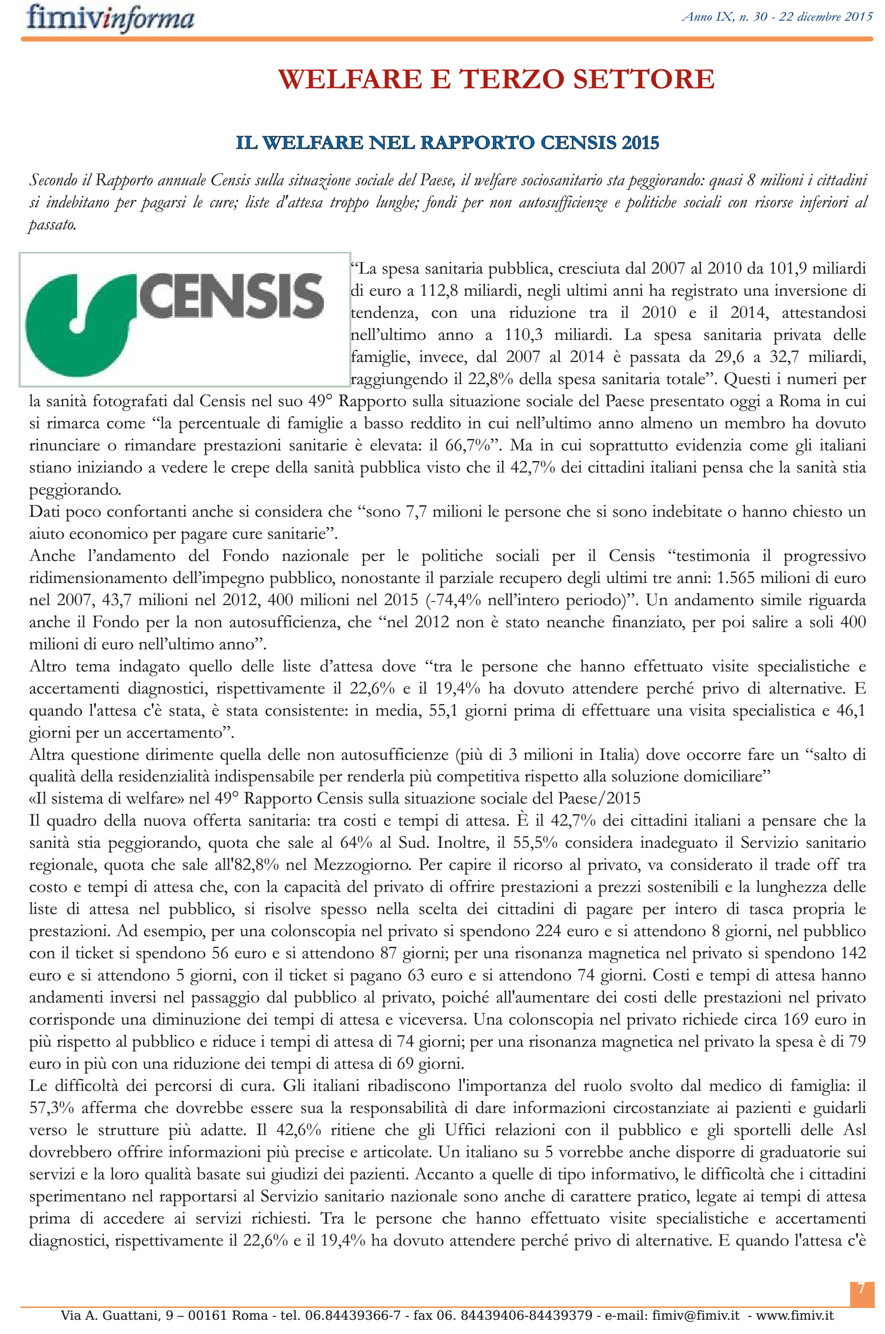 Questo articolo preso dalla newsletter di dicembre della FIMIV, forse, spiega meglio e con numeri diversi che senso hanno o che potrebbero avere le SMS oggi. Naturalmente, il discorso è volutamente limitato agli aspetti socio-sanitari e socio-assistenziali. I dati provengono dal “Rapporto sulla situazione sociale del Paese/2015”.