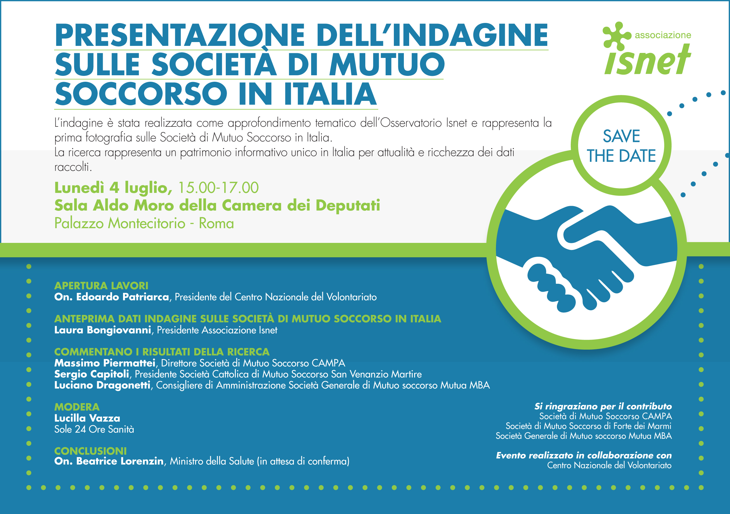 - Siamo stati invitati ed abbiamo partecipato alla presentazione dei risultati della prima indagine sulle Società di Mutuo Soccorso in Italia (ISNET), presso la Sala Aldo Moro della Camera dei Deputati a Roma.