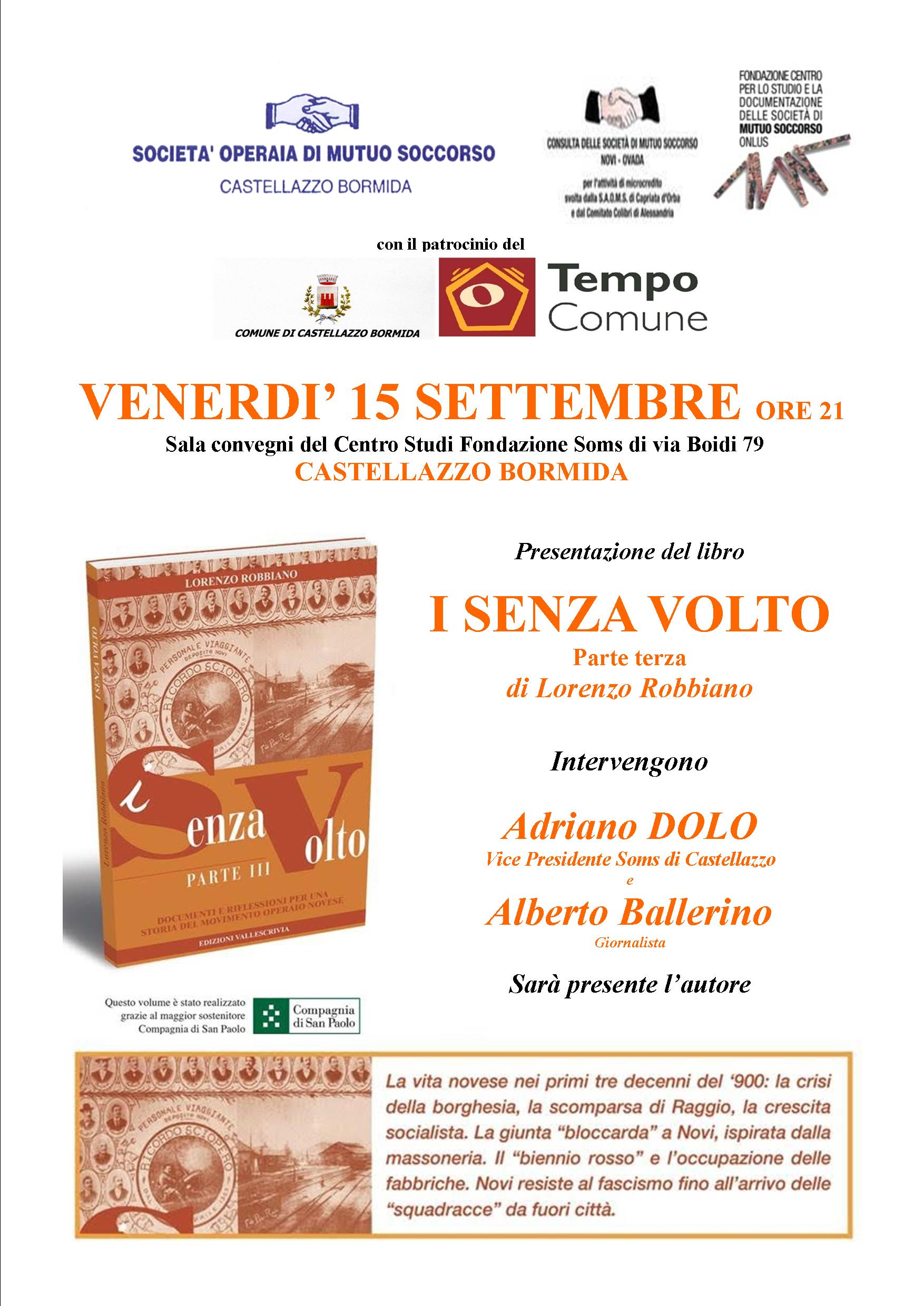 Un consiglio per la lettura in arrivo dalla fondazione SOMS di Castellazzo dove, venerdì 15 settembre, sarà presentato il volume “I Senza Volto parte III. Documenti e riflessioni per una storia del movimento operaio novese” di Lorenzo Robbiano.