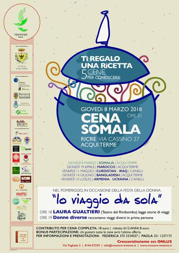 La partenza dalla Somalia, poi Marocco, Kurdistan/Iraq, Bangladesh e, infine, Armenia/Ucraina. Ti regalo una ricetta, 5 cene per conoscersi è l’iniziativa lanciata da Crescere Insieme onlus e, a quanto pare, a giudicare dalla prima serata, l’idea è destinata ad essere un successo. Come faccio a saperlo? Beh, se già ad inizio settimana avevano aperto la lista d’attesa perchè i posti disponibili (pare un centinaio circa) erano tutti esauriti, significa che di interesse ne è stato suscitato abbastanza.