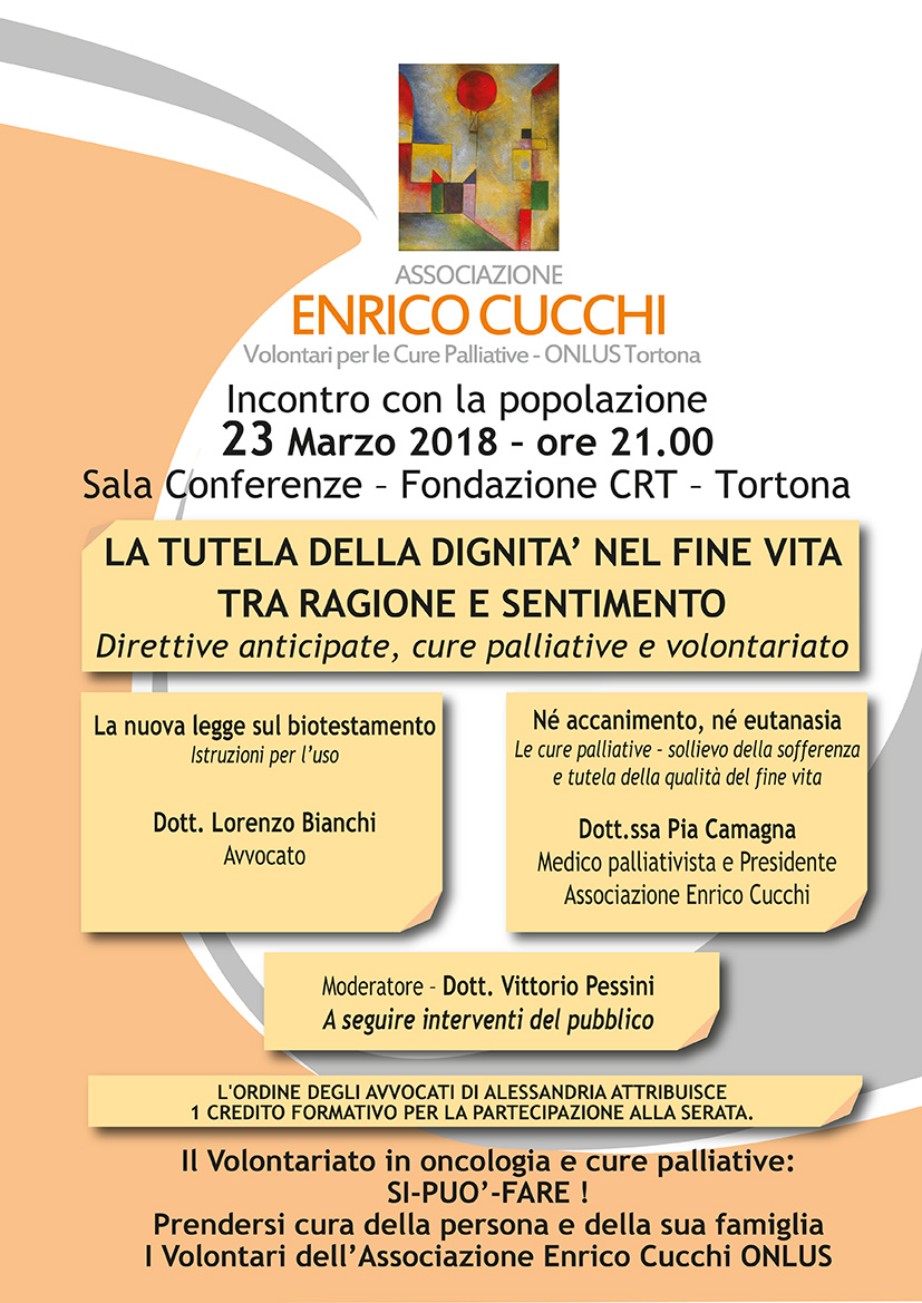 Questo articolo è stato pubblicato in Eventi, Gli altri e contrassegnato come Associazione Enrico Cucchi, biotestamento, cure palliative, Fine vita, incontro, Tortona da SOMS Insieme . Aggiungi il permalink ai segnalibri.