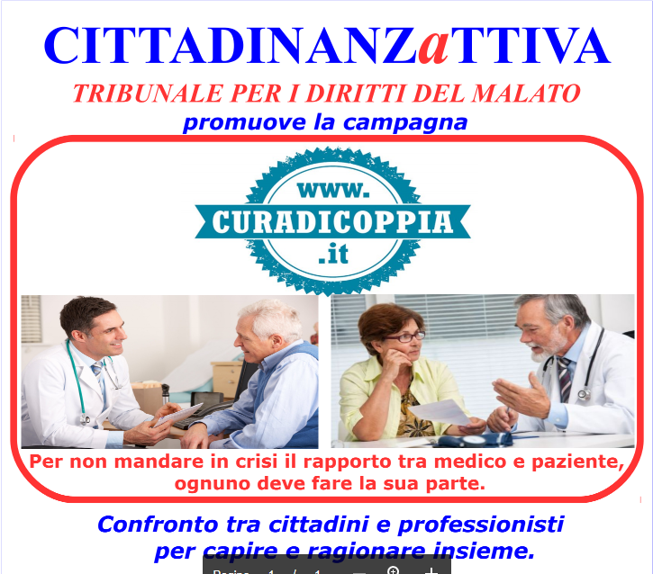 IL VADEMECUM “ CURA DI COPPIA “ è il progetto che Cittadinanzattiva propone affinché si possa migliorare il rapporto tra MEDICO E PAZIENTE e si possano conoscere i DIRITTI E I DOVERI DEL MEDICO e I DIRITTI E I DOVERI DEL PAZIENTE.