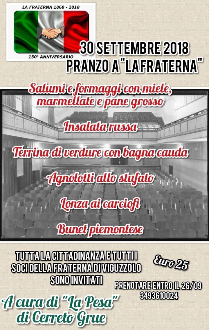 Domenica 30 settembre si chiudono i festeggiamenti per il 150° anniversario della fondazione della Società di Mutuo Soccorso “La Fraterna” di Viguzzolo. Il programma prevede