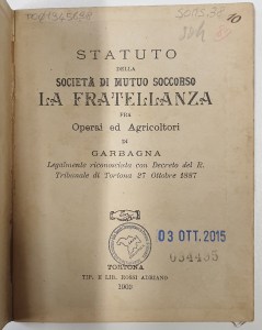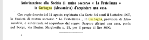 Società di Mutuo Soccorso fra Operai ed Agricoltori “La Fratellanza”: fondata nel 1884 e riconosciuta giuridicamente con atto del Tribunale di Tortona nell’ottobre 1887.
