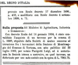 - Unione di Mutuo Soccorso ed istruzione fra i terrazzani di Mombisaggio: fondata nel 1876, ottiene il riconoscimento giuridico con provvedimento del tribunale nell’ottobre 1894. Tra le attività sociali, si fa segnala l’apertura di una “Scuola complementare”.