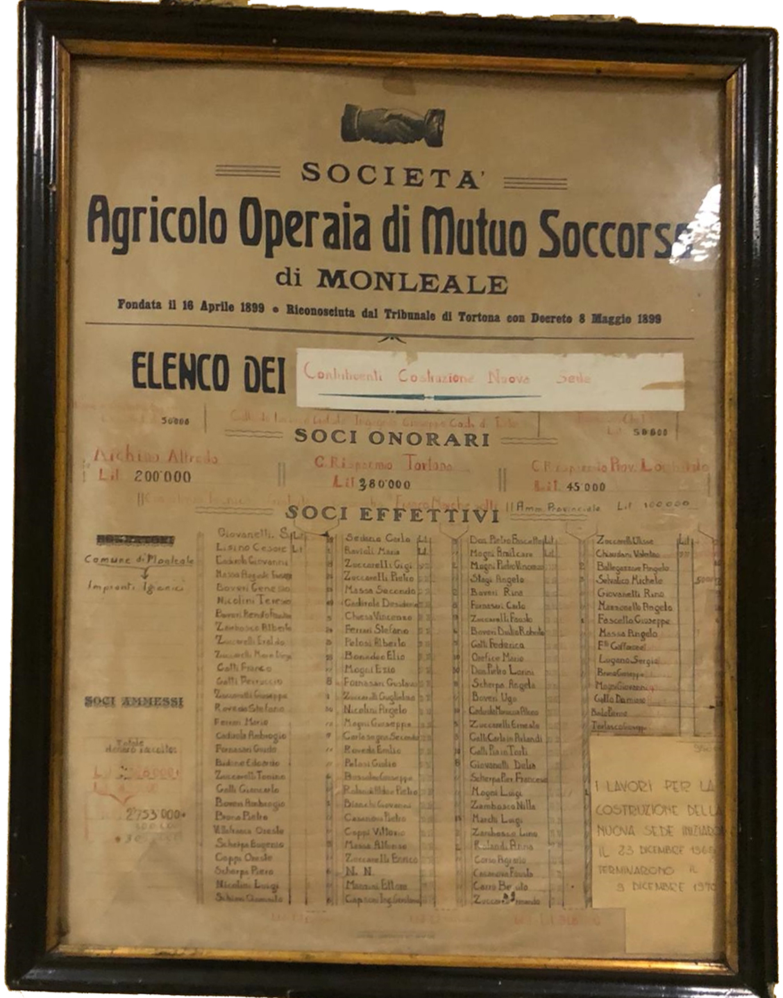 - Società Agricola Operaia di Mutuo Soccorso: fondata e riconosciuta con provvedimento del tribunale nel 1899.