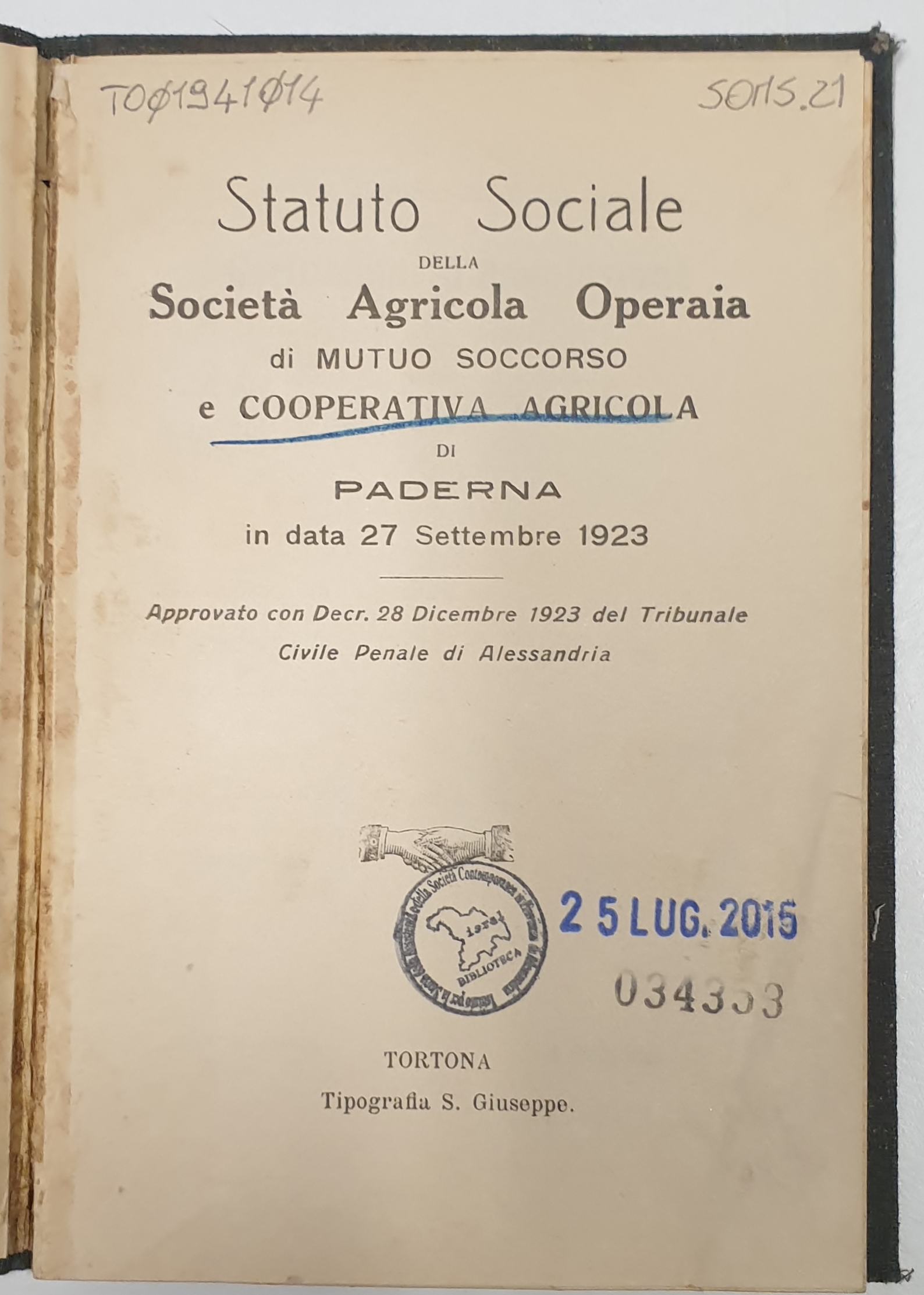 Paderna Società Società Agricola Operaia di Mutuo Soccorso ed Istruzione “L’Unione”: fondata nel 1890 e attiva in campo scolastico educativo. Società Agricola Operaia di Mutuo Soccorso e Cooperativa agricola: fondata nel 1923. Galleria 1923: Libretto del Socio e Statuto della S.O.A.M.S. e Cooperativa agricola (fondo S.O.M.S., ISRAL Alessandria). ultimo aggiornamento 20 dicembre 2019 Condividi: Fai clic per inviare un link a un amico via e-mail (Si apre in una nuova finestra) E-mail Fai clic per condividere su X (Si apre in una nuova finestra) X Fai clic per condividere su Facebook (Si apre in una nuova finestra) Facebook Fai clic qui per condividere su LinkedIn (Si apre in una nuova finestra) LinkedIn Fai clic per condividere su WhatsApp (Si apre in una nuova finestra) WhatsApp Mi piace Caricamento...