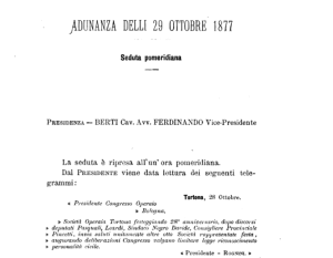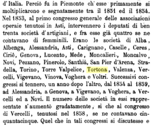 Nel 1853, la Società è tra le partecipanti al primo congresso delle associazioni operaie tenutosi ad Asti.