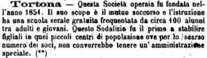 Nel 1871 è tra le associazioni che compongono le Società Operaie Riunite del Circondario di Tortona e, nel 1873, è tra i promotori della “Banca dei Piccoli Prestiti e Cassa di Risparmio del Circondario di Tortona”, costituitasi nel febbraio 1874.