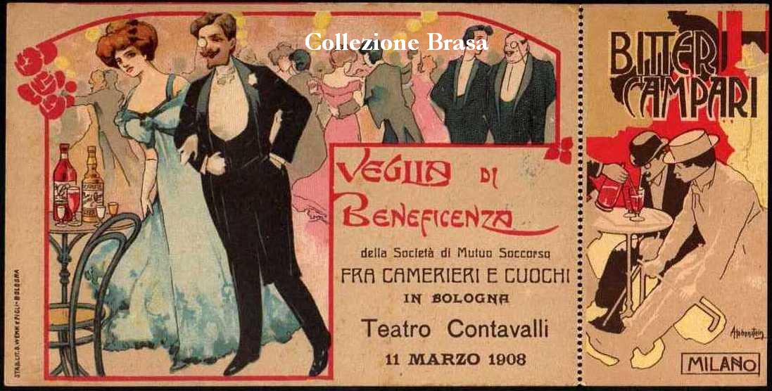 1908 – Biglietto per la Veglia di Beneficenza organizzata dalla Società di Mutuo Soccorso fra Camerieri e Cuochi – Bologna